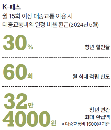 한 달에 15회 이상 정기적으로 시내버스와 지하철 등 대중교통을 이용하면 다음달 지출액의 일정 비율을 돌려받을 수 있으며, 연간 최대 32만원까지 환급하여 대중교통비의 30%이상 절약할 수 있습니다.