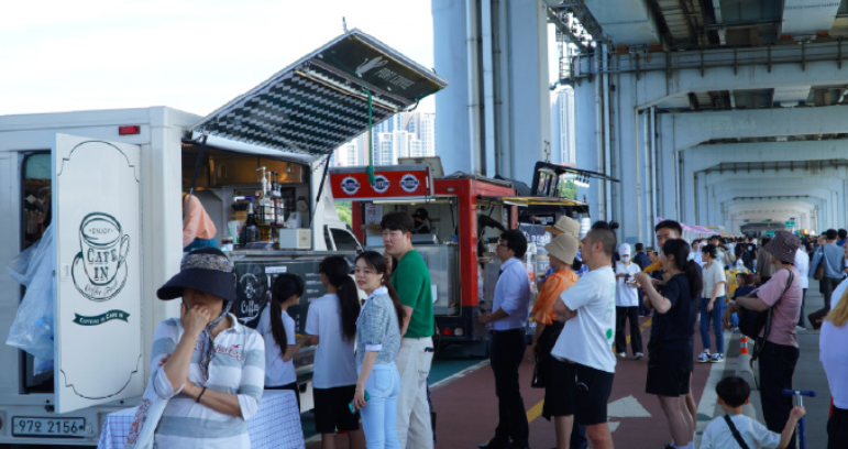 잠수교 14~ 15, 42~44경간에서 푸드트럭이 open될 예정이고, 잠수교 북단 6대, 남단 14대의 푸드트럭이 운영됩니다.