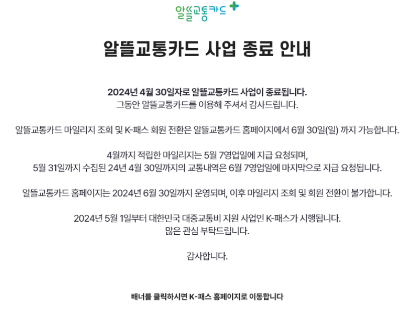 - 적립수단 : 전국 모든 대중교통 (버스, 지하철, 신분당선, 광역버스, GTX 등)