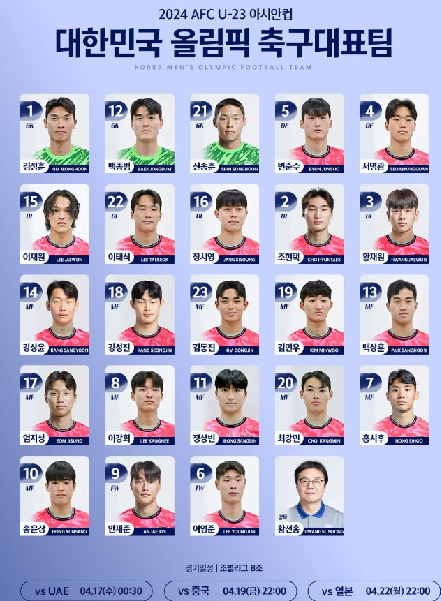 이번 23세이하 아시안컵은 올림픽 예선도 겸하고 있는데요. 무조건 3위 안에 들어야 올림픽에 직행할 수 있고 우승을 해야 올림픽에서 가장 좋은 조에 속할 수 있습니다.